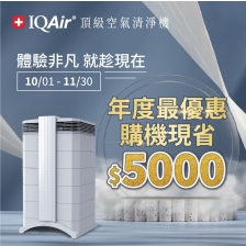 全球醫療院所防疫用清淨機▶IQAir空氣清淨機,改善冬季過敏、呼吸道感染等症狀!年終雙重回饋▶購機現折5000,再贈第一層濾網。搭配百貨優惠/信用卡活動最高再送$6000。