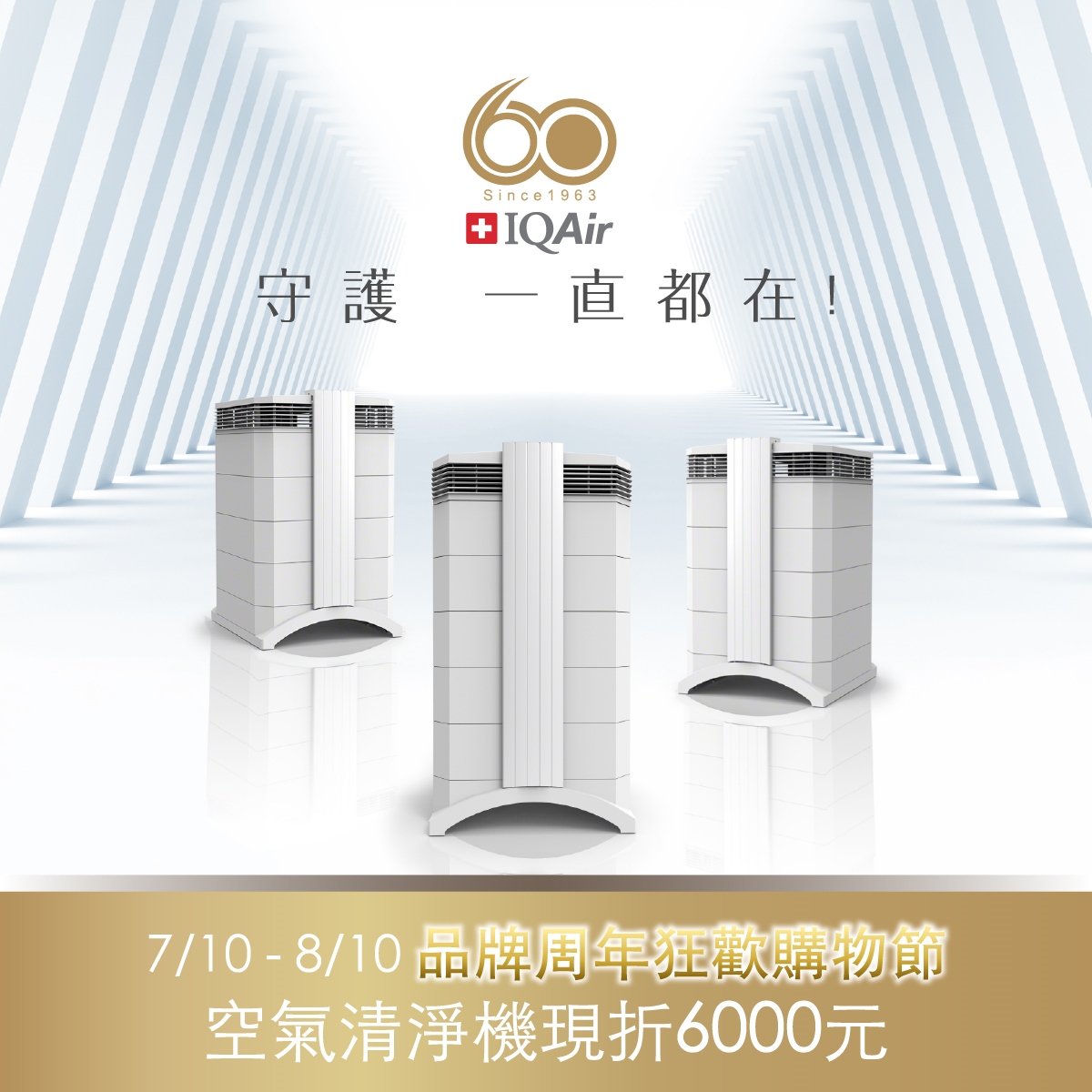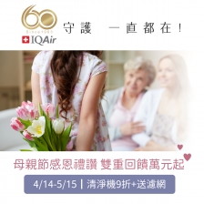 IQAir成立自1963年來,今年迎來第60個年頭,IQAir始終為了一個能安心呼吸的環境而努力。 IQAir 60週年品牌慶,狂歡購物節,特選商品想$6000折扣!!